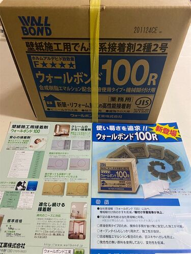 新発売のウォールボンド100R サンプルでいただきました 従来からあるウォールボンド100は糊付け機械でつけるとローラーに巻き上がりにくく糊のかすれの原因にもなっていました このウォールボンド100Rは粘土や内容量の濃さを変えずに緩くしてあるそう じゃあ…