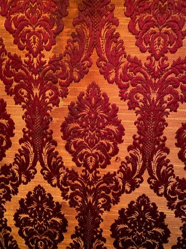 対馬の最後にスナックへ なかなかレトロなスナックでしたが壁紙が今では貴重な良いものが貼ってありました 金華山かな❓ 織がしっかりしてます 他にはベルベット 天井は起毛の壁紙 バブル時代以前の壁紙達ですね〜 椅子生地もしっかりです テーブルの天板は彫…